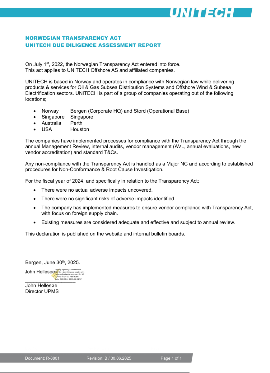 Please note that this Privacy Policy does not apply to you if you are an employee or contractor of UNITECH Offshore A/S who is using this Site. Please consult the employee handbook for details on acceptable use of UNITECH Offshore A/S’s computer equipment, including its servers.